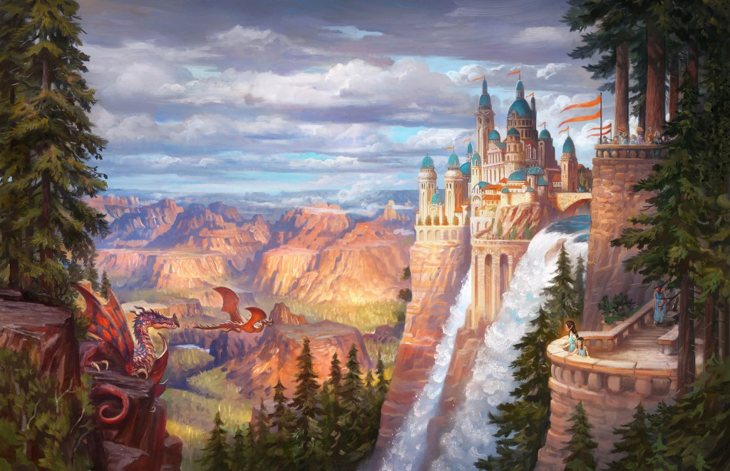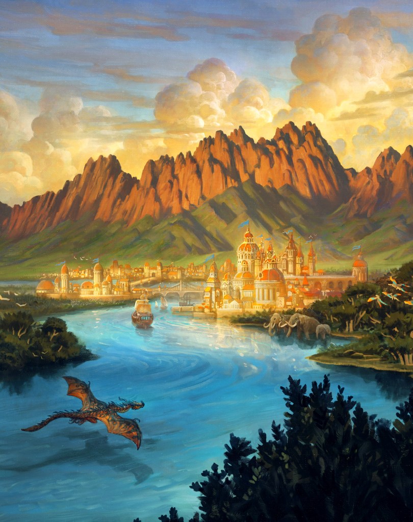 Embark on a magical journey through the North American Ice Age, where elves, dwarves, dragons, orcs, and gnomes coexist with woolly mammoths, giant sloths, and American lions. Dazzling faerie kingdoms grace the American landscape alongside ice sheets and expansive magical woods, now replaced by deserts.